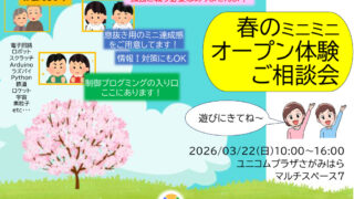 現在募集中 春のミニミニオープン体験ご相談会 日時2026年(令和8年)3月22日(日曜日) 10:00~16:00 場所ユニコムプラザさがみはら マルチスペース7 ユニコムプラザさがみはらについてはこちら>>参加費無料事前申込は不要。お気軽に遊びにきてね♪小学生からシニアの方まで大歓... 2026.02.28 現在募集中講座開催のご案内